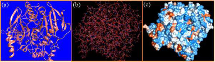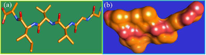 Fig. (2e). (i) Capped stick representation of the protein Aβ42. (ii) Surface covered representation of the protein Aβ42.