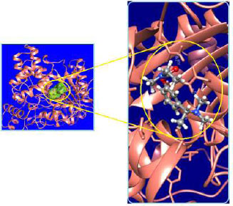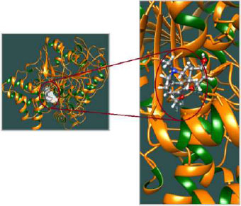 Fig. (3a). Docked model of the galantamine with acetylcholinesterase (2ACE).