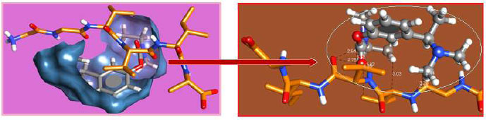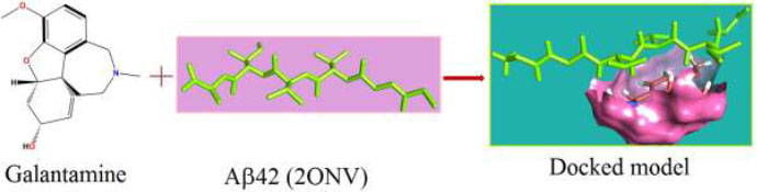 Fig. (3e). Docked model of Galantamine with Aβ42 (2ONV).