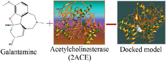 The appropriate docking study between galantamine as well as rivastigmine with Aβ-42 and acetylcholinesterase was performed using HEX 8.0.0. software [25]. The structures of the drugs were drawn using CHEMSKETCH (http://www. acdlabs.com) and converted to PDB format from mol format by OPENBABEL (http://www.vcclab.org/lab/babel/). The structure of the acetylcholinesterase having PDB ID: 2ACE and Aβ42 protein fibril with PDB ID: 2ONV was obtained from the protein data bank (http://www.rcsb.org./pdb). CHIMERA (www.cgl.ucsf.edu/chimera) and PyMol (http://pymol.sourceforget.net/) molecular graphics programs were used for the visualization of the docked pose as well as the interaction between the drugs and protein/enzyme [26].